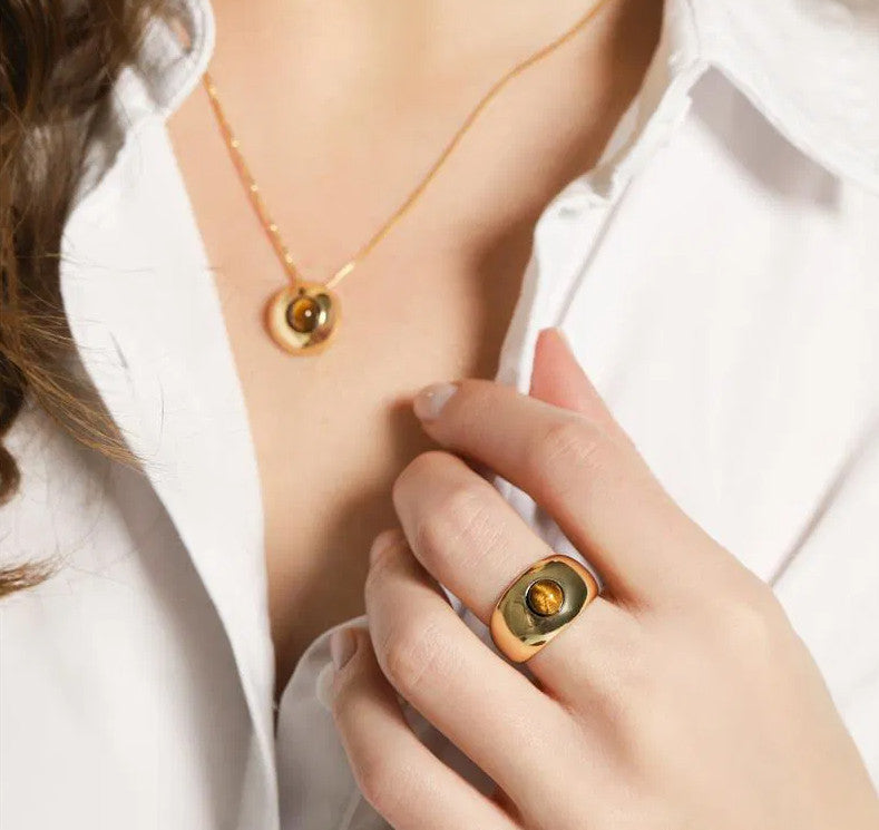 Rose Quartz Wide Band Ring