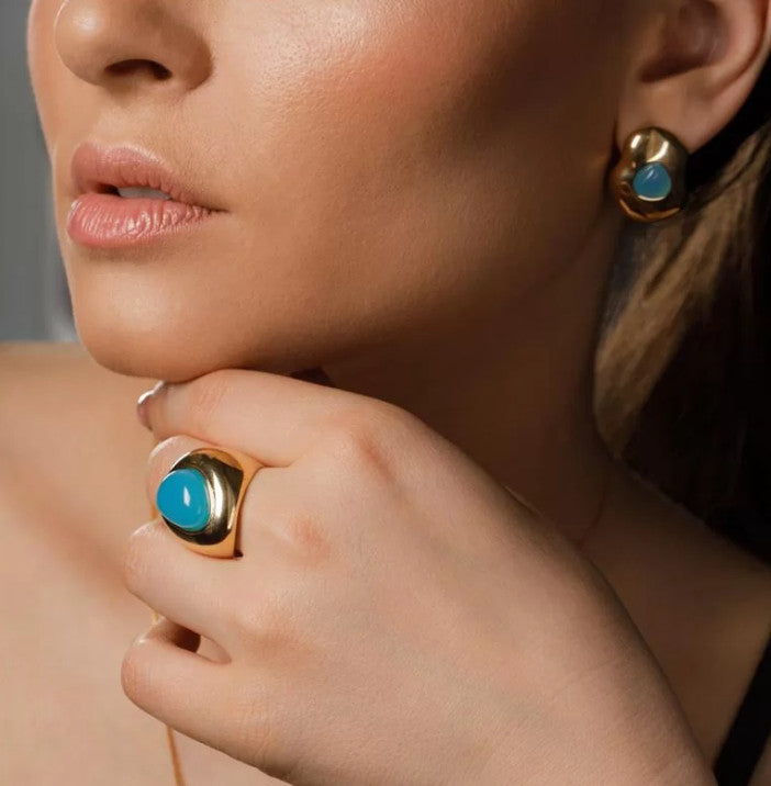 Earring with cabochon stone in the shape of a drop 8.65mm.