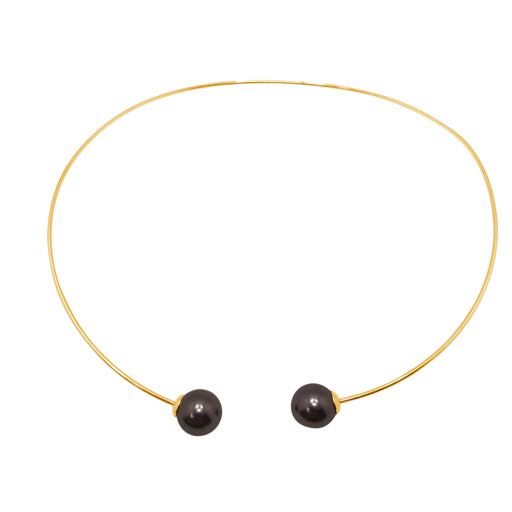 Un girocollo aperto con una perla di conchiglia su ciascuna estremità. È semplice e leggero per valorizzare il tuo look quotidiano! Disponibile dalla collezione Rio Design Gemstones su oro 18 carati o rodiato con perle bianche o grafite.