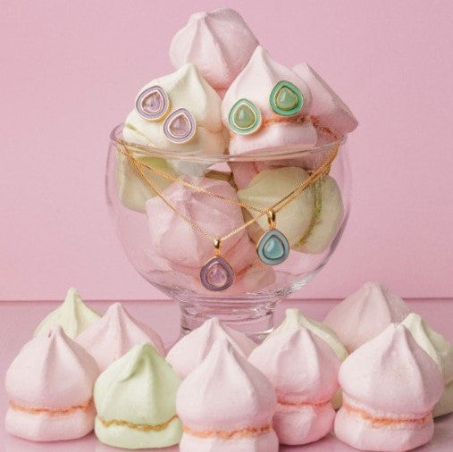 An adjustable ring with a drop shaped gemstone on our Gelato frame, with color coordinated enamel border.
