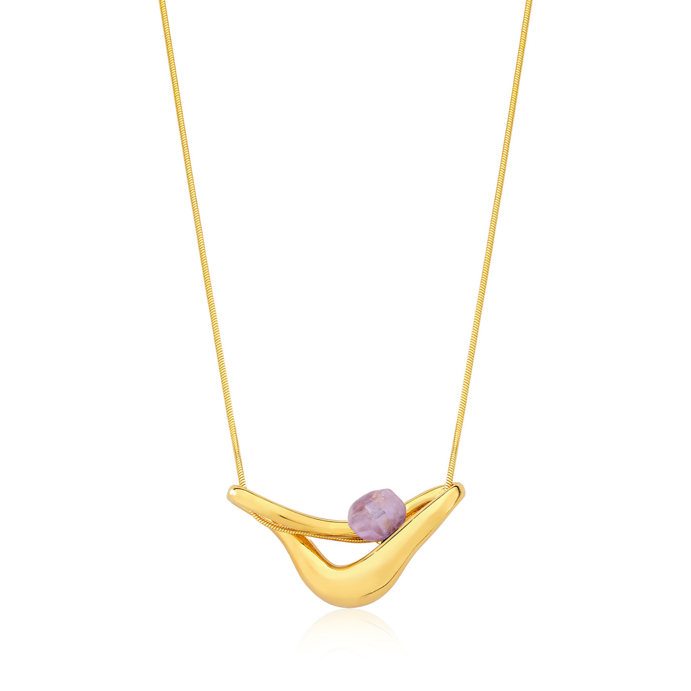 One of our most appreciated gemstones, the Amethyst lays on a 18K gold plated sculpture to show its best.